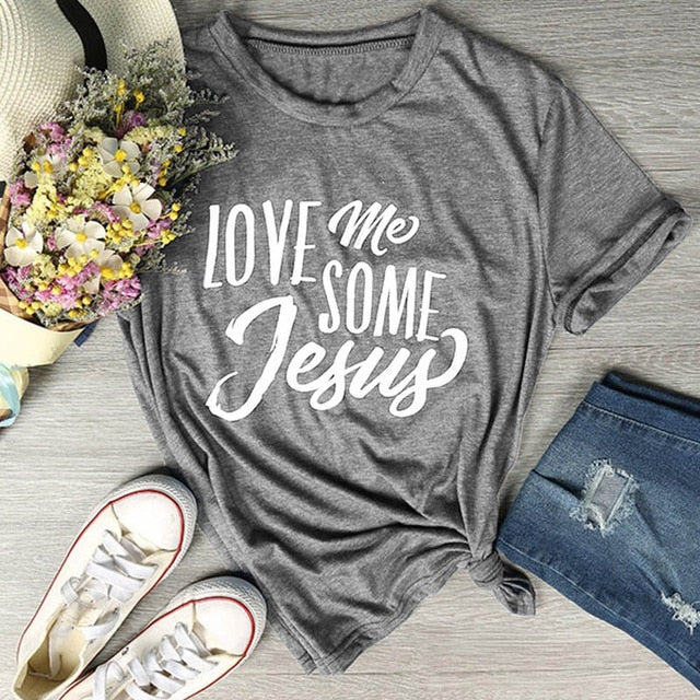 Love Me Some Jesus Letter Print T-Shirt Short Sleeve Casual Tops women fashion grunge tumblr cotton tees slogan Christian tshirt