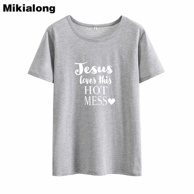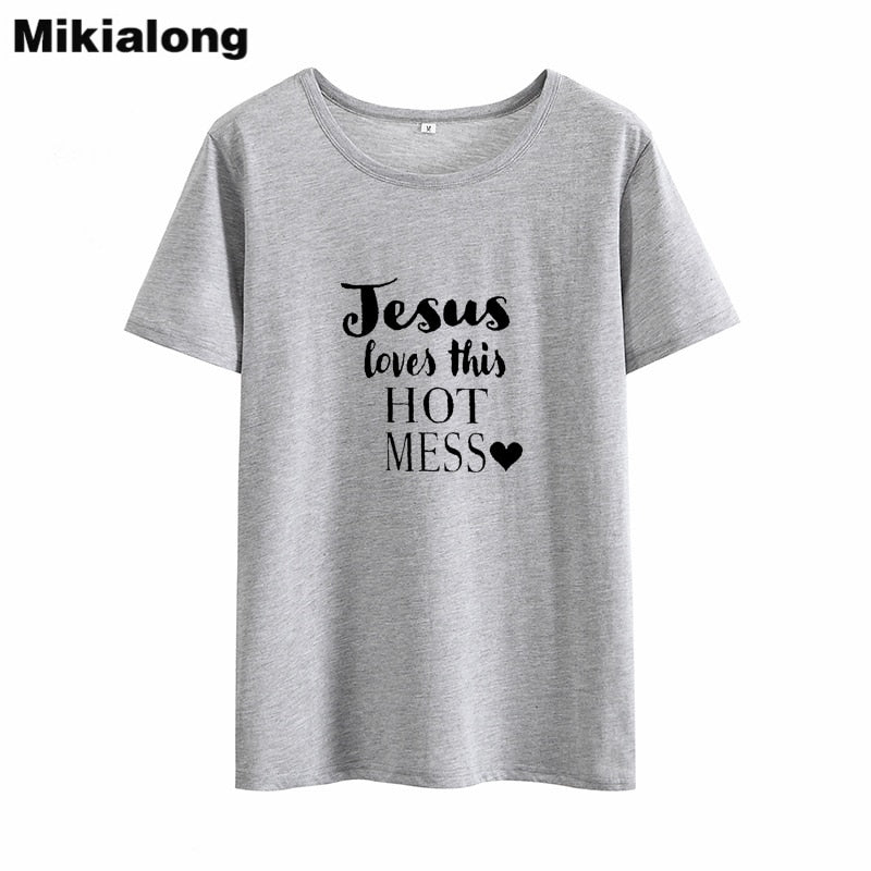 MIkialong Jesus Love Hot Mess Funny T Shirts Women 2018 Summer Cotton Tshirt Women Black Printed Tee Shirt Femme Tumblr T-Shirt